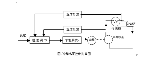 根據(jù)以上分析(以冷卻泵進(jìn)行分析說(shuō)明):由于冷卻塔的水溫是隨環(huán)境溫度而變的,其單側(cè)水溫度不能準(zhǔn)確地反映冷凍機(jī)組內(nèi)產(chǎn)生熱量的多少。所以,對(duì)于冷卻泵,以進(jìn)水和回水之間的溫差作為控制依據(jù),來(lái)實(shí)現(xiàn)進(jìn)水和回水的恒溫差控制。