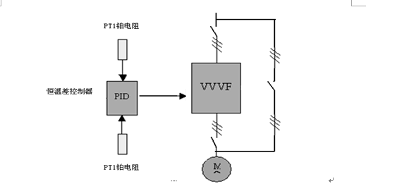 ●恒溫差控制器,用于對(duì)Pt1和Pt2測(cè)得的溫度信號(hào)進(jìn)行轉(zhuǎn)換、放大、求差,再進(jìn)行PID恒溫差運(yùn)算處理后,得出0—10V模擬信號(hào),輸出,作為變頻器的頻率給定信號(hào)。如下圖: