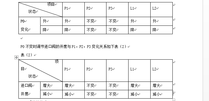 由表(1)和表(2)所反映的在P0改變時和進(jìn)口閥開度改變時,P1、P2、P3和L1、L2的變化可見,進(jìn)氣P0的升高或降低,使P1、L1和L2發(fā)生相應(yīng)的改變。如果要使流量L1和L2不變,可調(diào)節(jié)進(jìn)口閥的開度往P0增加的相反方向變化,即P0增大,進(jìn)口閥開度減少,或P0降低,進(jìn)口閥開度增大。
