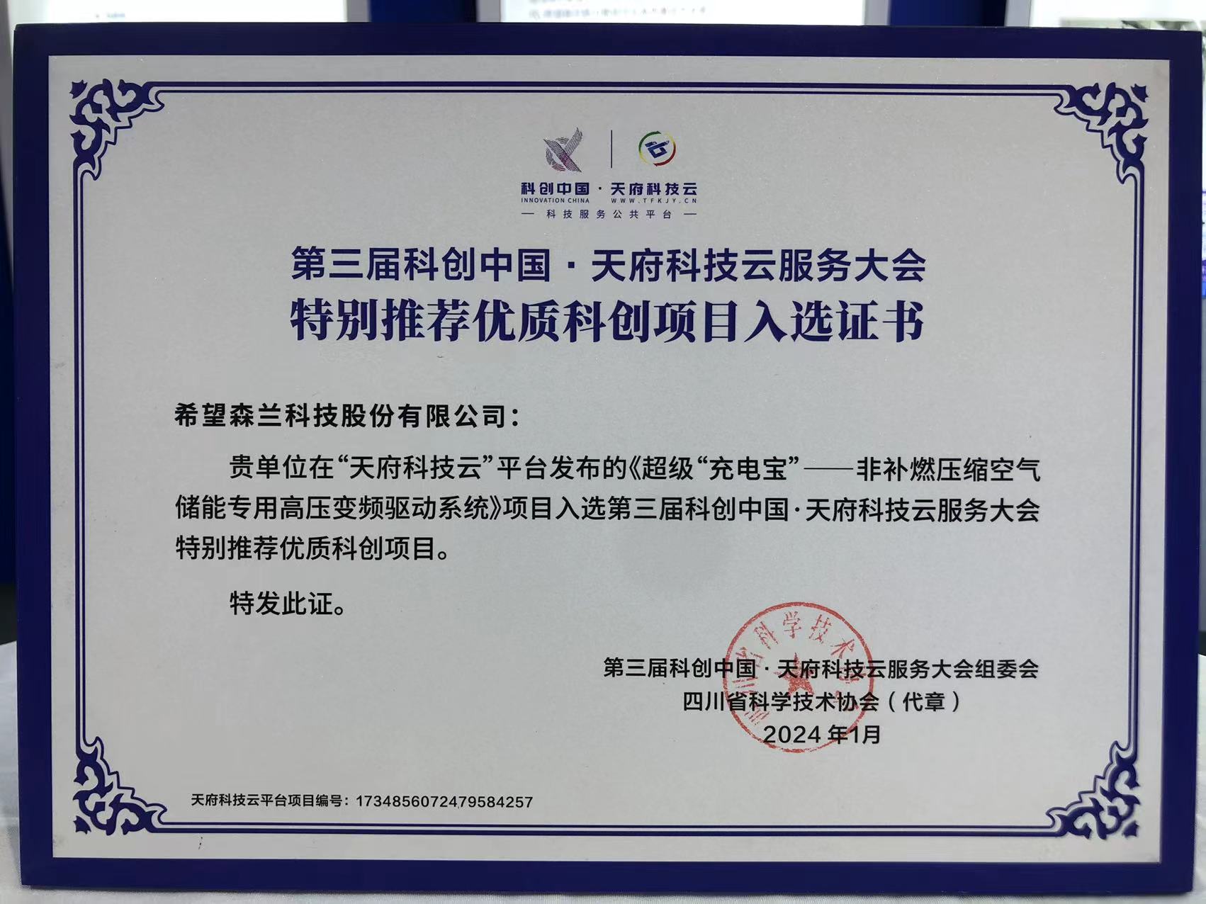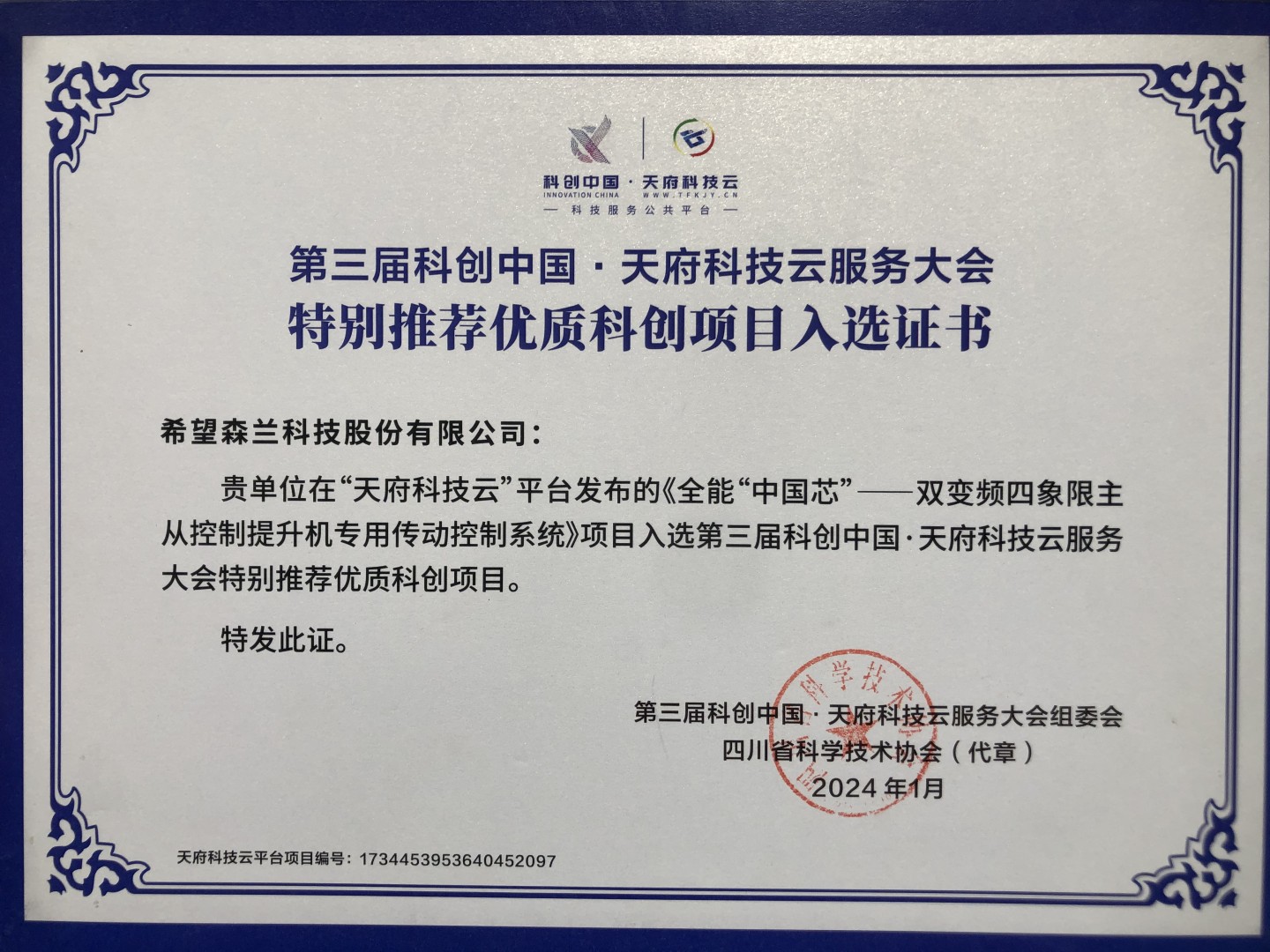 本屆大會面向大院大所大企業(yè)等征集到科創(chuàng)項目8700個,希望森蘭科技股份有限公司作為國內專業(yè)從事傳動控制技術研究的領軍企業(yè),憑借硬核解決方案成功吸引了大會的關注。不僅被選為本屆重大高新技術待推廣項目,還榮獲了“特別推薦優(yōu)質科創(chuàng)項目”獎項。