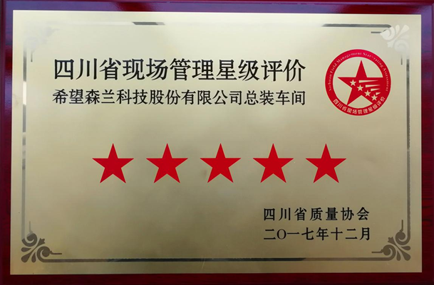 2018年1月4日,公司總裝車(chē)間被評(píng)為“四川省現(xiàn)場(chǎng)管理星級(jí)評(píng)價(jià)五星級(jí)現(xiàn)場(chǎng)”。同期榮獲五星級(jí)現(xiàn)場(chǎng)的公司還有通威太陽(yáng)能(成都)有限公司、中國(guó)核動(dòng)力研究設(shè)計(jì)院設(shè)計(jì)所、中國(guó)兵器裝備集團(tuán)自動(dòng)化研究所。
