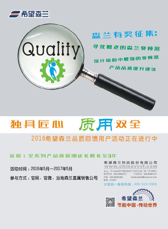 作為國內(nèi)變頻器行業(yè)領(lǐng)軍企業(yè)的希望森蘭科技股份有限公司(以下簡稱“希望森蘭”),在今年的5月份重磅推出了主題為“獨(dú)具匠心,質(zhì)用雙全”的品質(zhì)提升回饋活動,目前活動正在火熱進(jìn)行中。