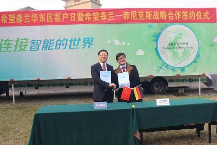 此次戰(zhàn)略合作,希望森蘭秉承“節(jié)能中國,伙伴天下”的戰(zhàn)略發(fā)展戰(zhàn)略,以“希望無限,卓越無境”為理念,與菲尼克斯的合作,也是希望森蘭長遠戰(zhàn)略的重要組成部分,雙方將在節(jié)能環(huán)保與新能源發(fā)電;智能連接;新能源汽車等領域,在電動汽車充電樁、智能制造、品牌提升、新能源汽車、創(chuàng)新科技等多領域進行全方位的交流與合作。