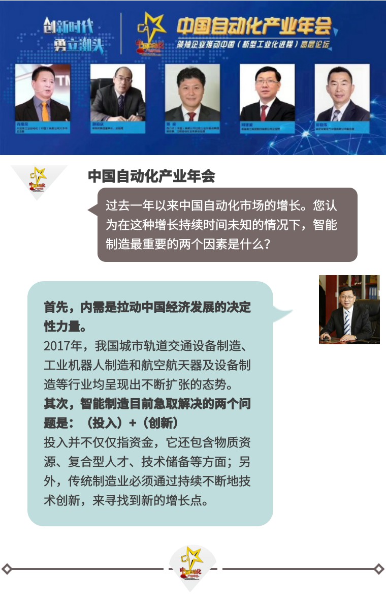 針對過去一年以來中國自動化市場的增長的原因、持續(xù)時間,以及智能制造的組成因素等問題,論壇主持人對中國自動化產(chǎn)業(yè)的領(lǐng)袖企業(yè)高層進行了逐一采訪。